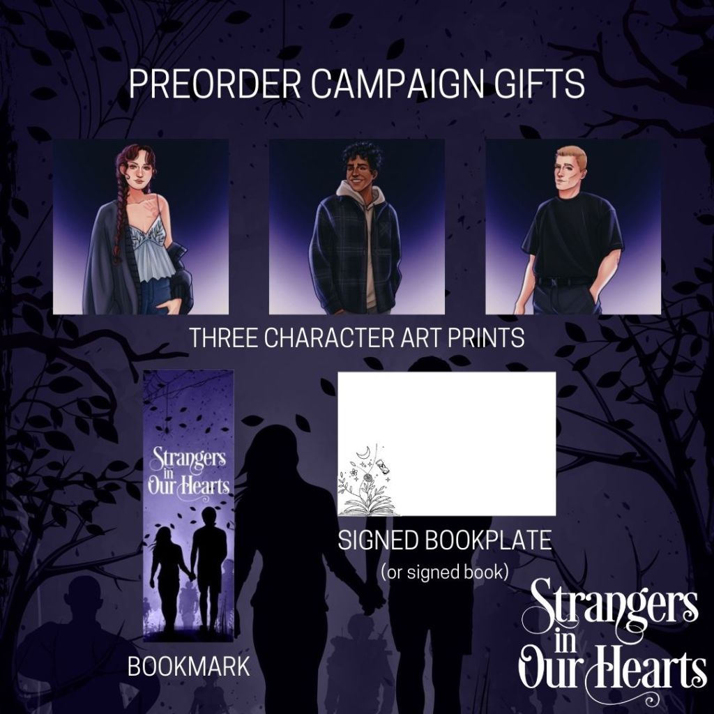 You can preorder a paperback and hardcover through my website or Universal Link and an eBook through Amazon! You’ll get three character art prints, a customized bookmark, and either a signed book (if you order through me directly) or a bookplate (when you order elsewhere). And don’t forget to fill out my preorder campaign form so you get your free goodies!